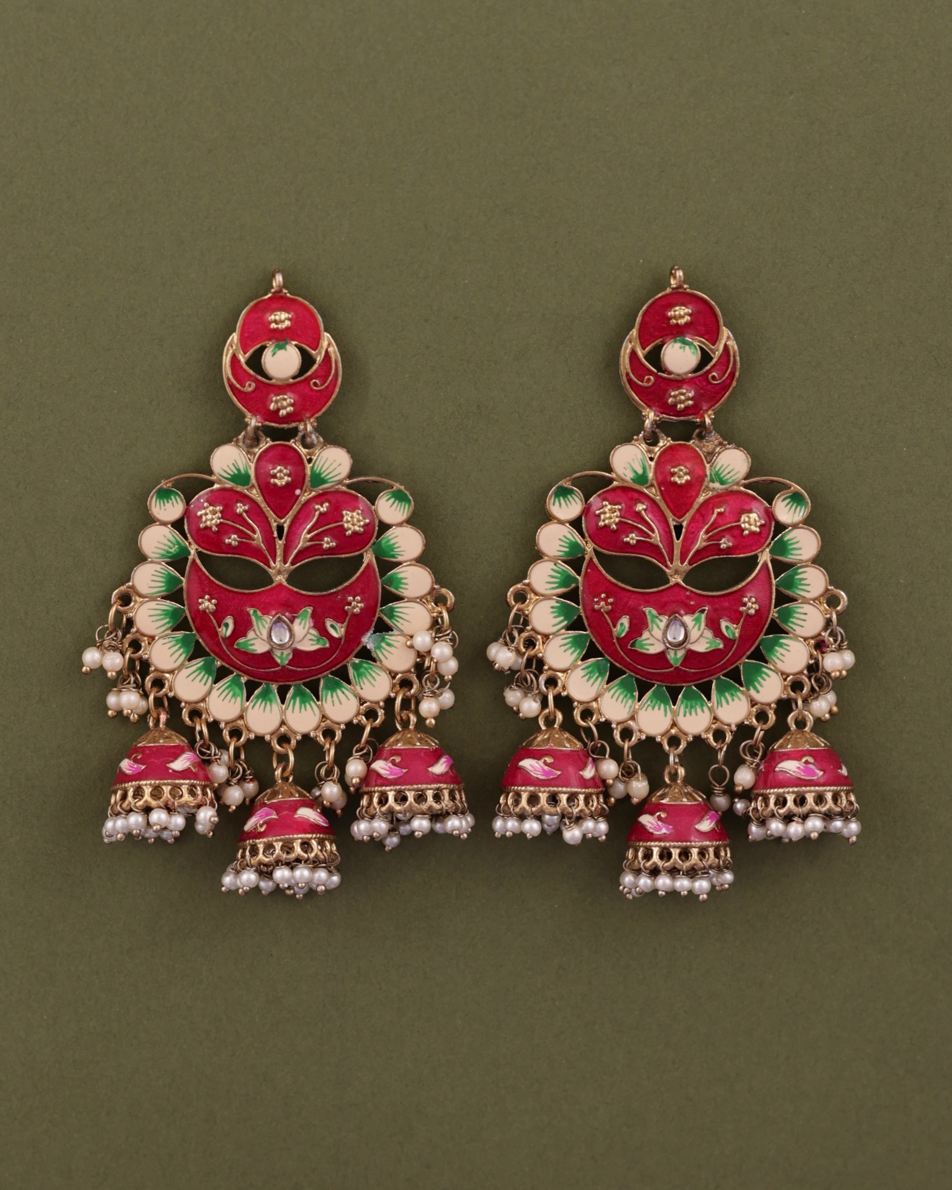 Pink Charvi Meenakari Jhumka