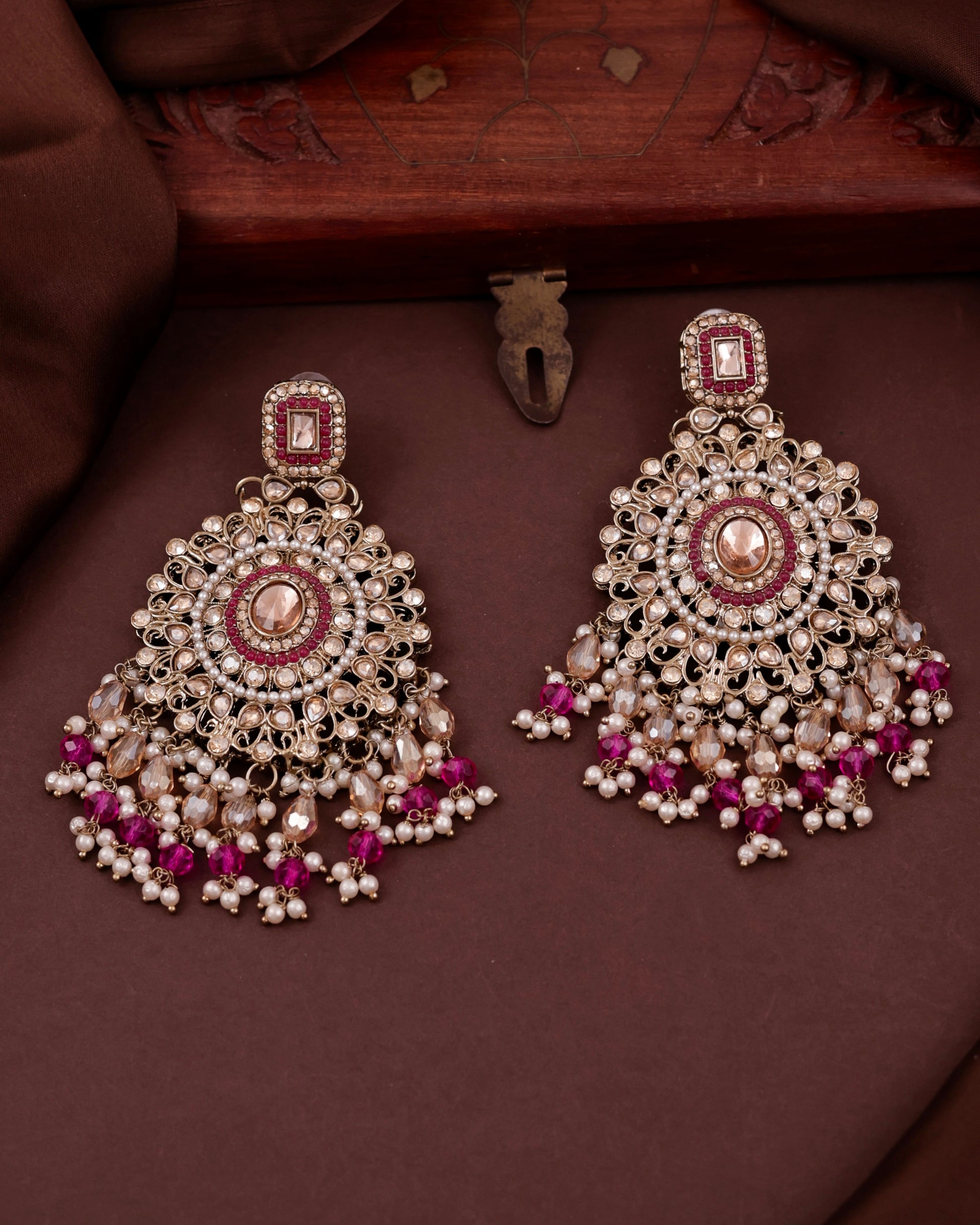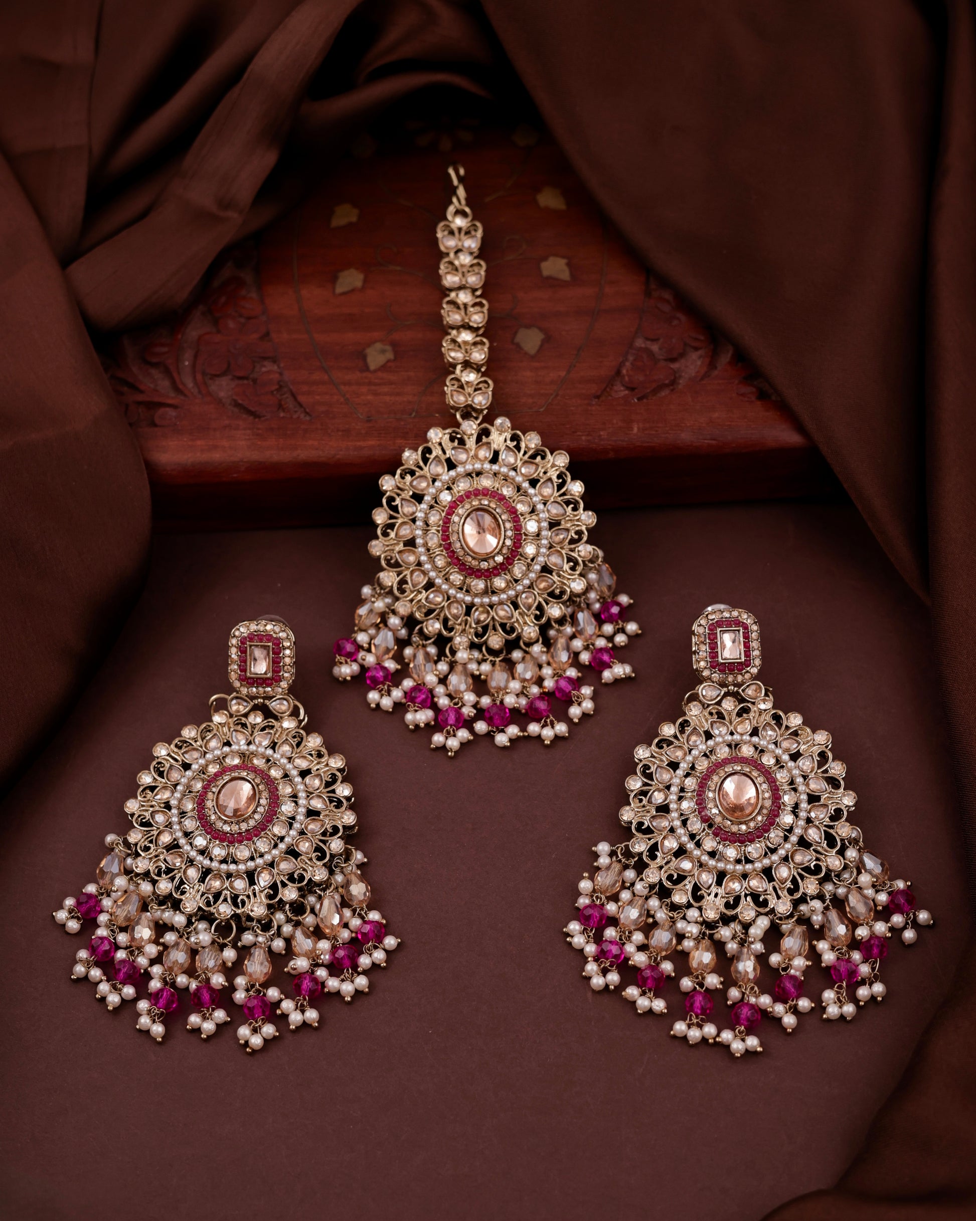 Pink Tavisha Punjabi Pakistani Teeka Chandbali Set