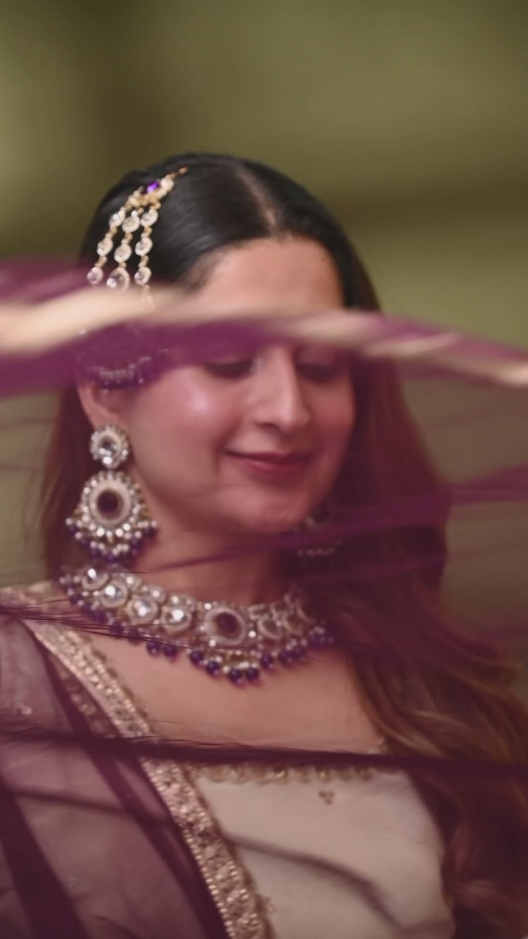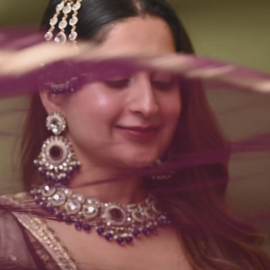 Purple Laviza Premium Polki Dupe Necklace Earring with Teeka and Side Jhumar/Passa