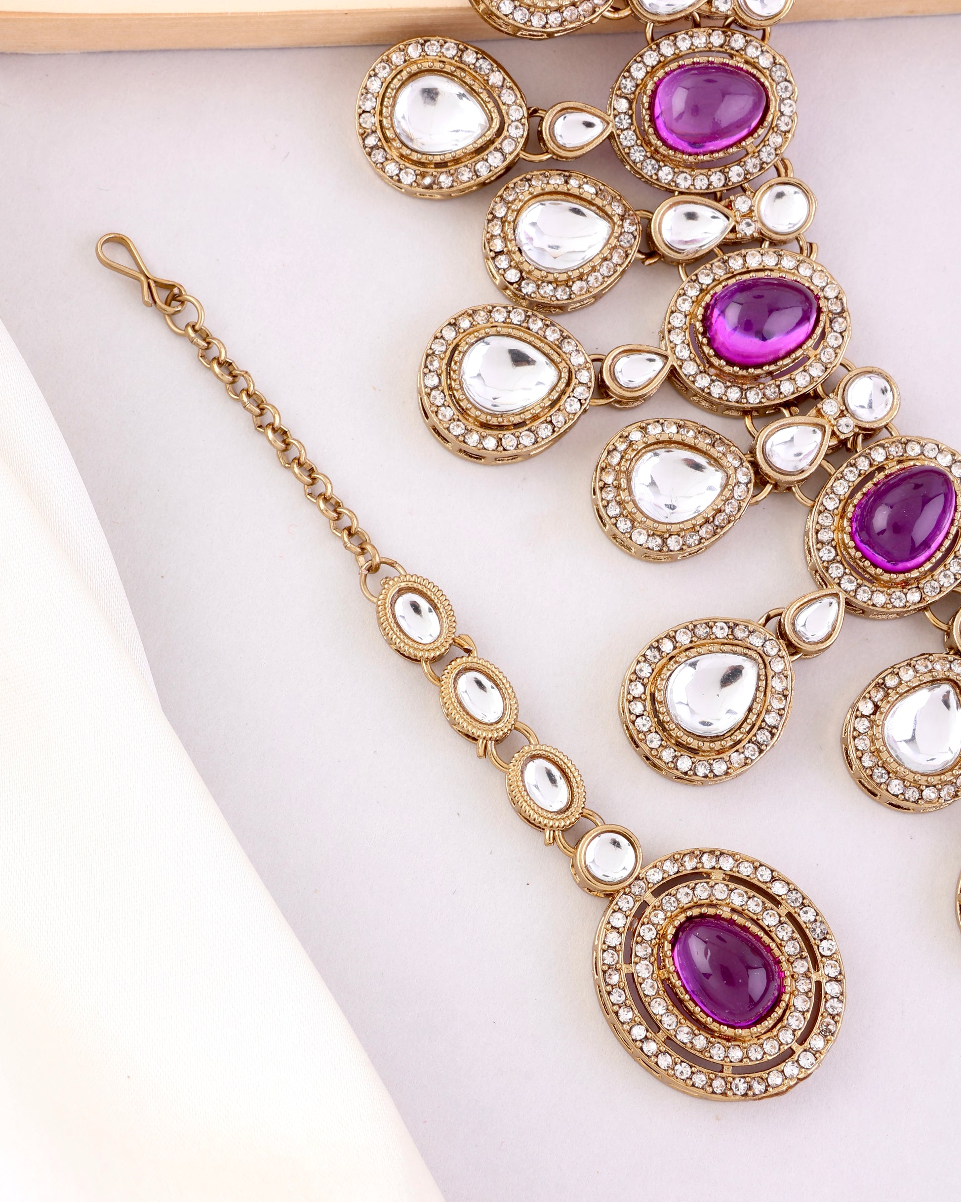 Purple Sehaj Premium Polki Dupe Necklace with Earring and Teeka