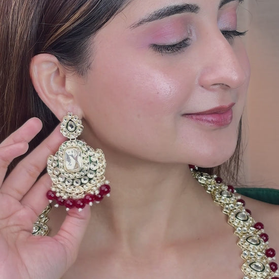 Red Noorika Heritage Kundan Necklace Set With Earring & Maangteeka