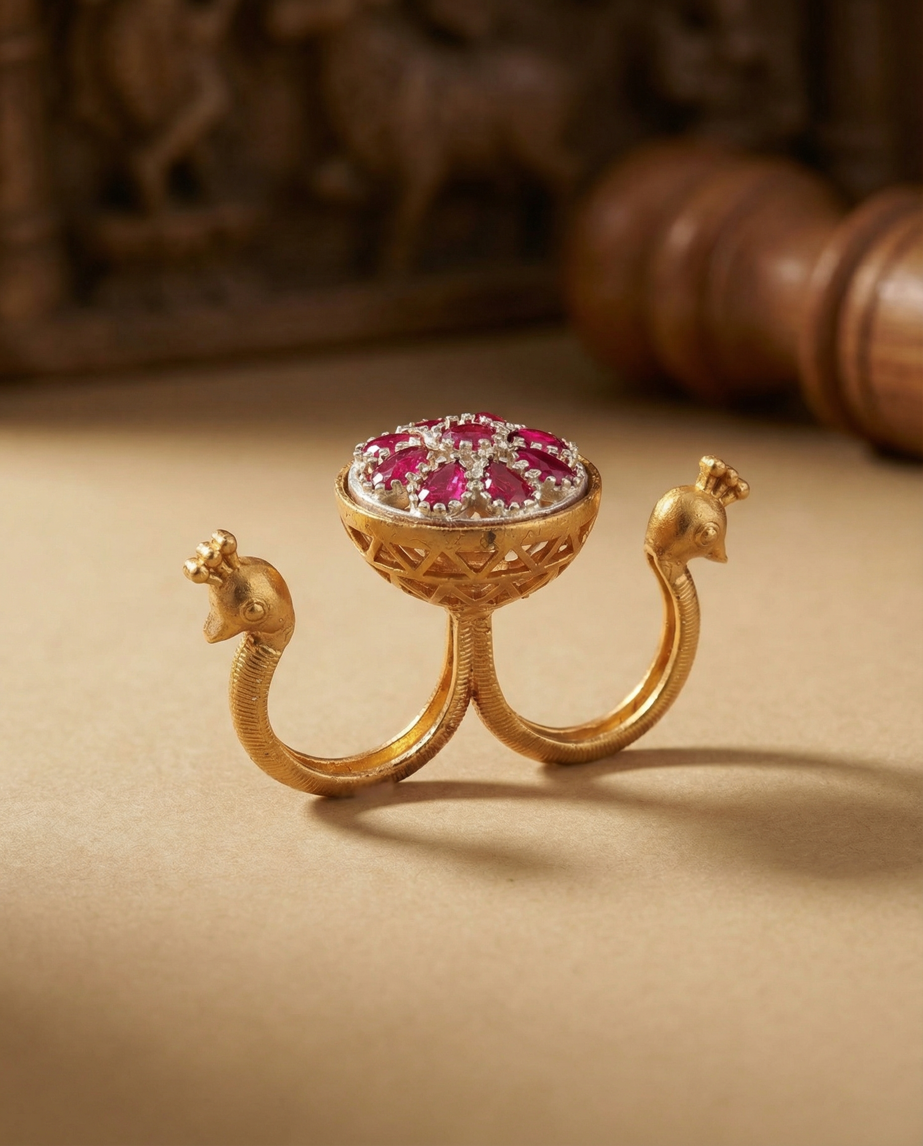 Ruby Umisha 2 Finger Brass Gold Statement Ring