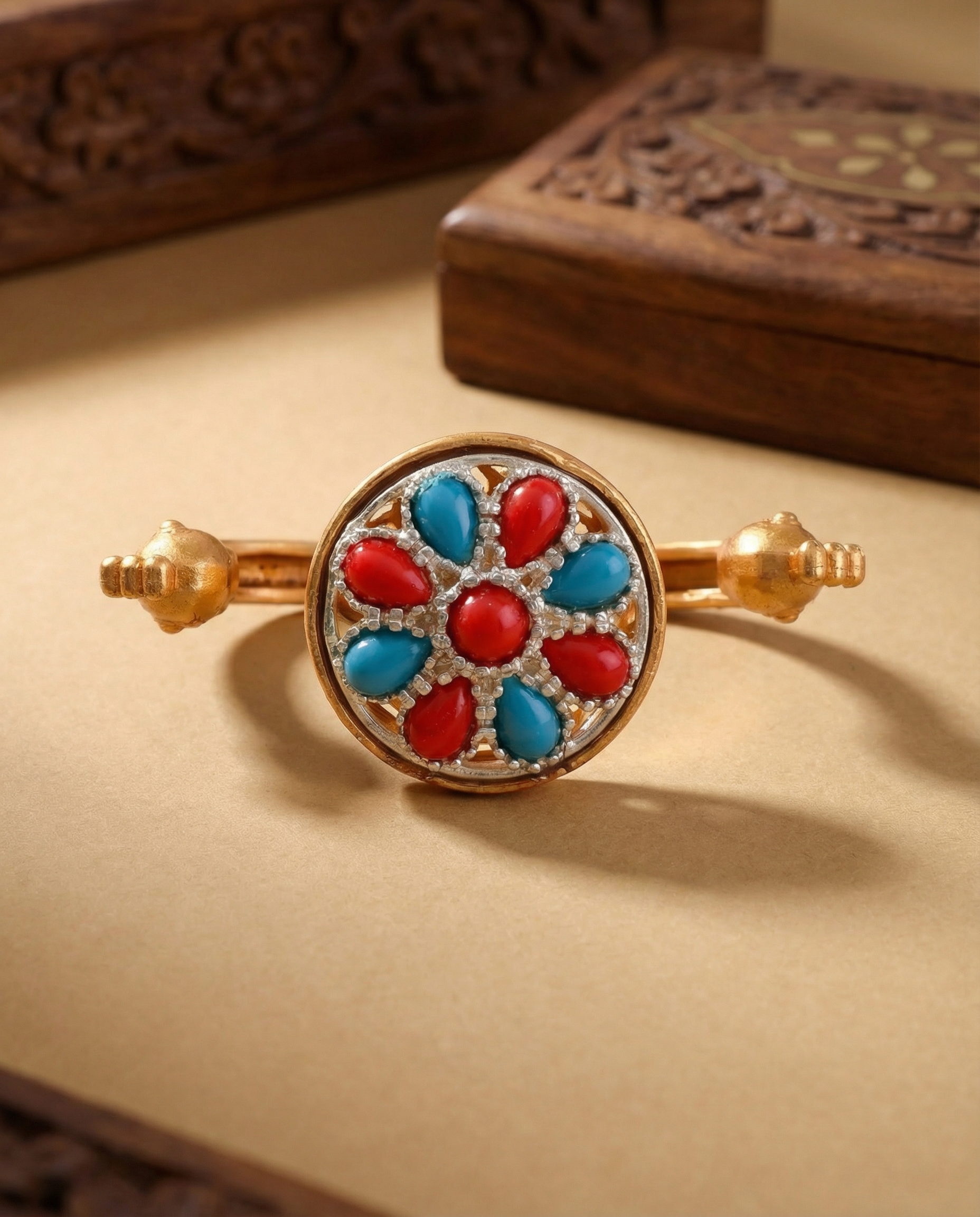 Sky Red Umisha 2 Finger Brass Gold Statement Ring