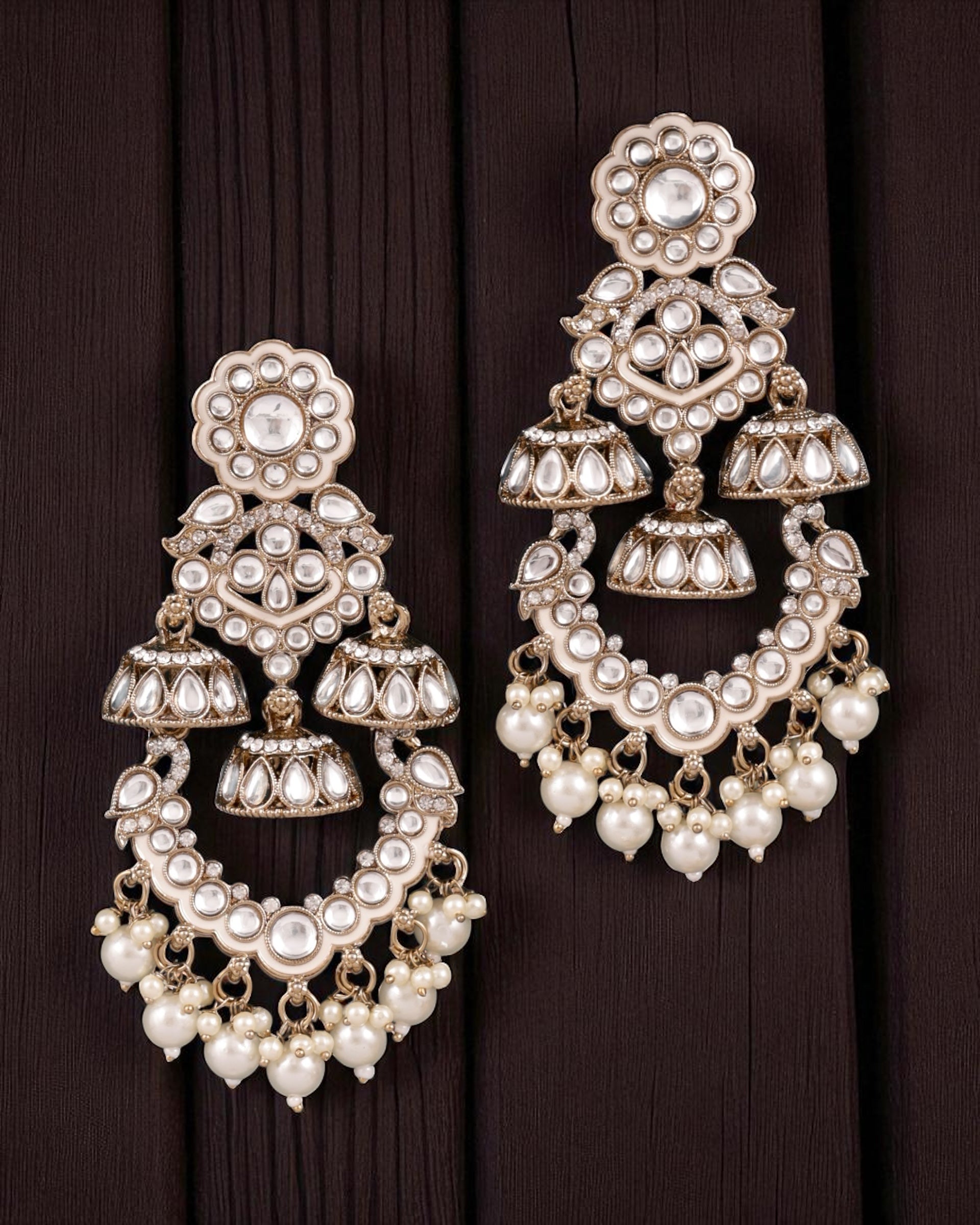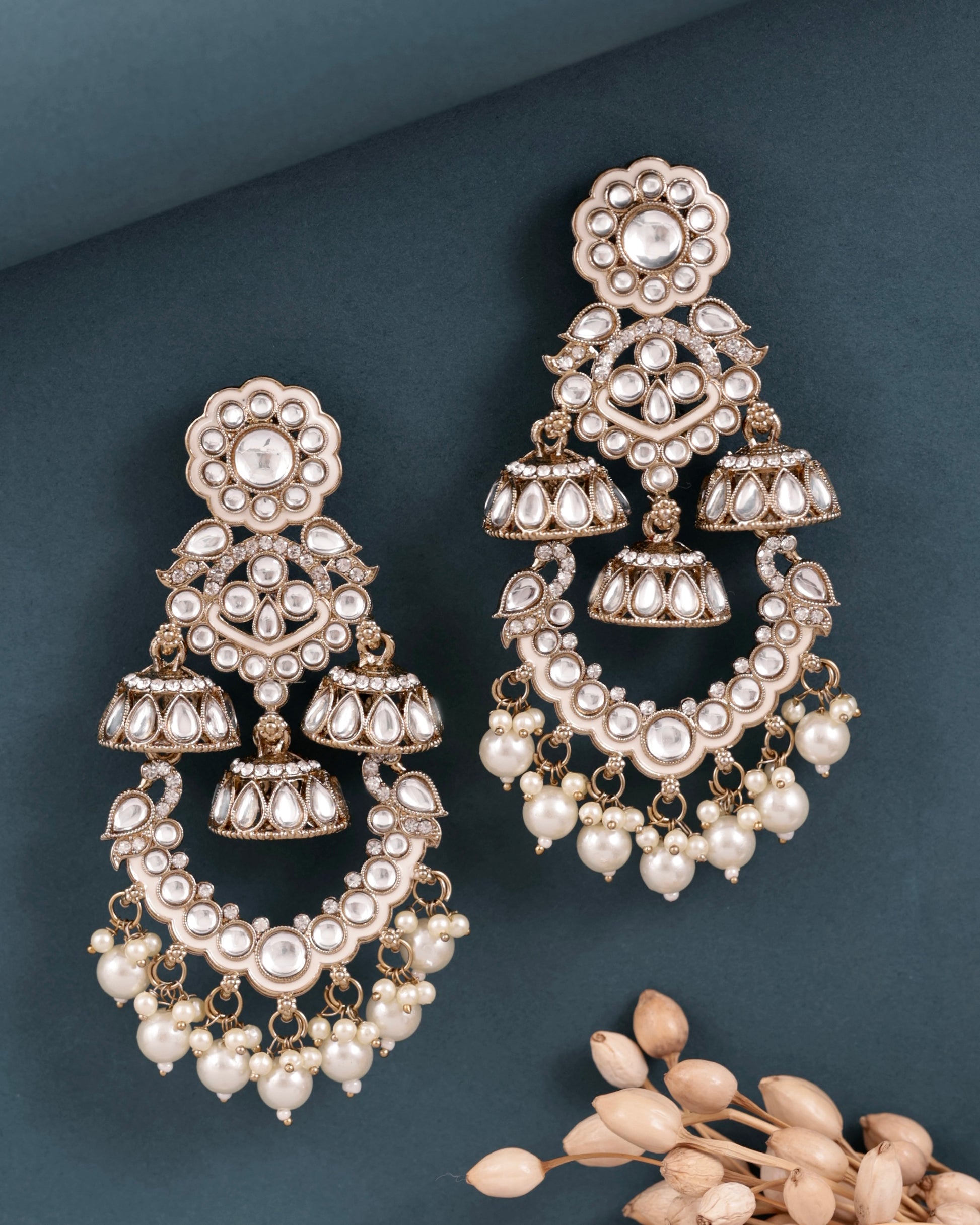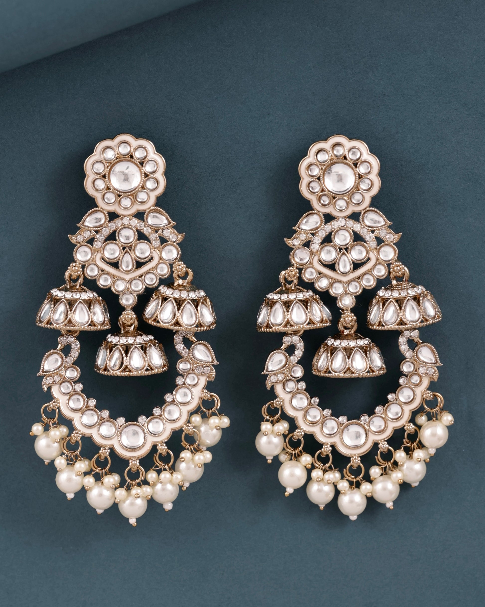 Pearl Taha Meenakari Zircon Jhumki Earring