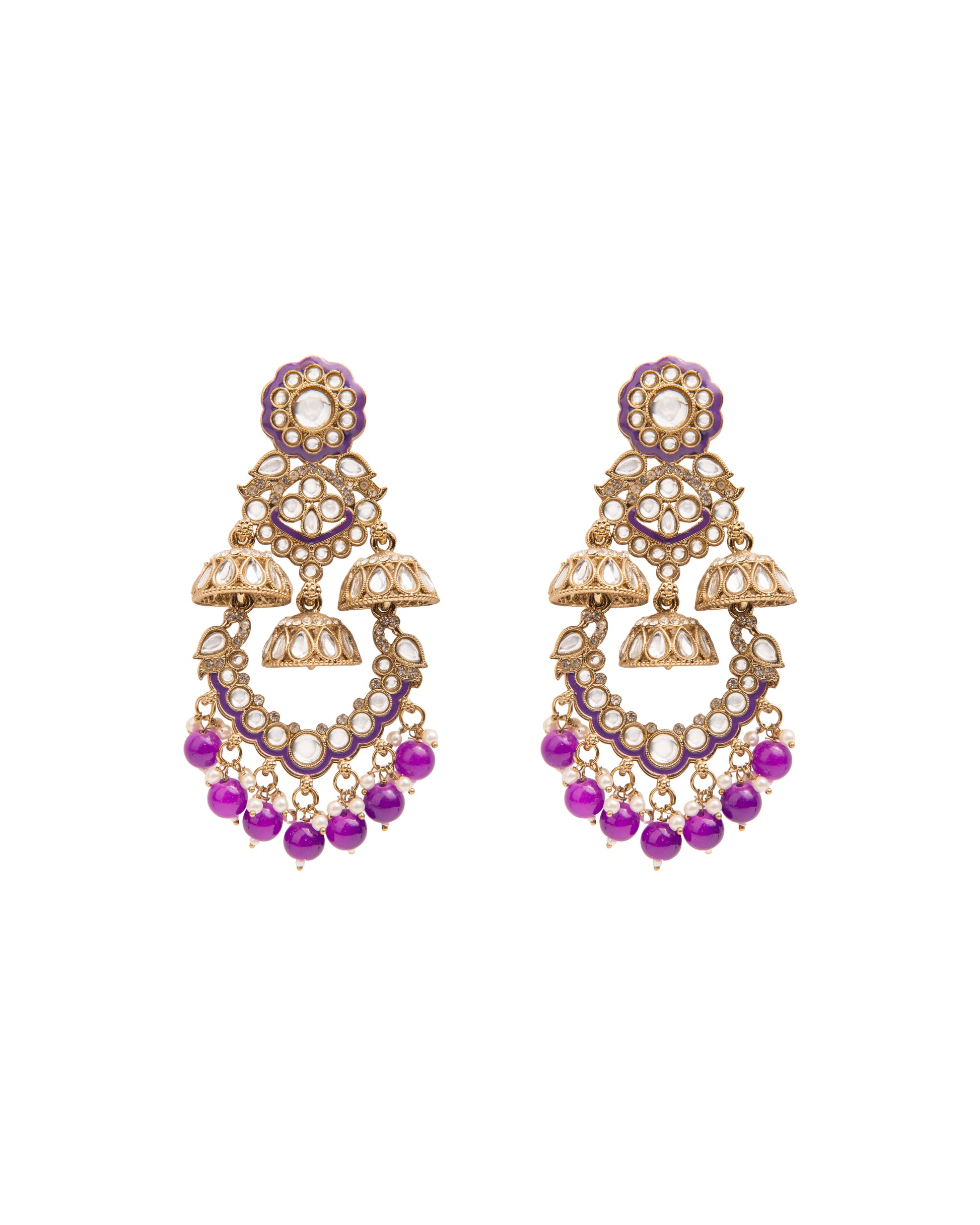 Purple Taha Meenakari Zircon Jhumki Earring