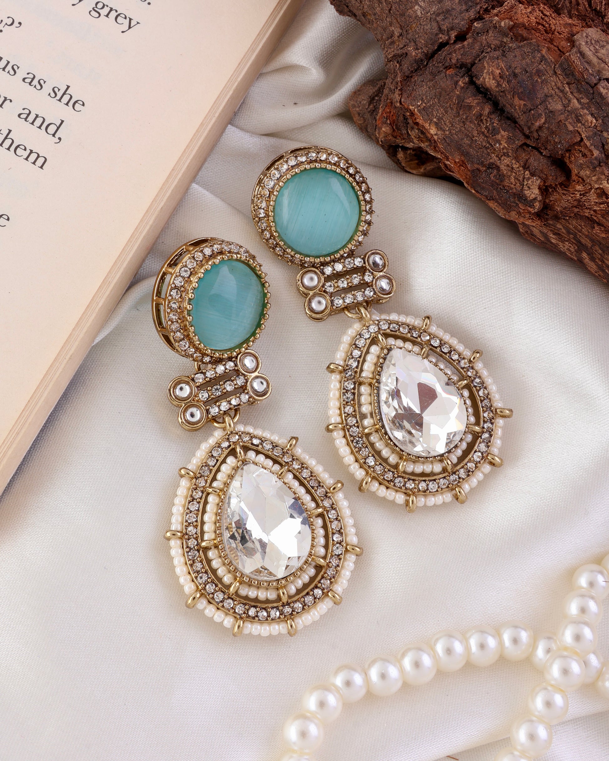 Turquoise Zyra Premium Designer Zircone Polki Dupe Earring
