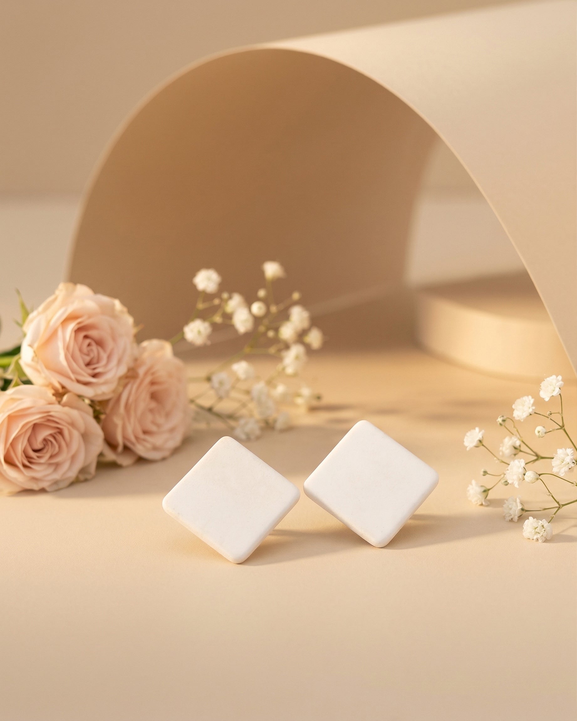 White Marjorie Stud Earrings