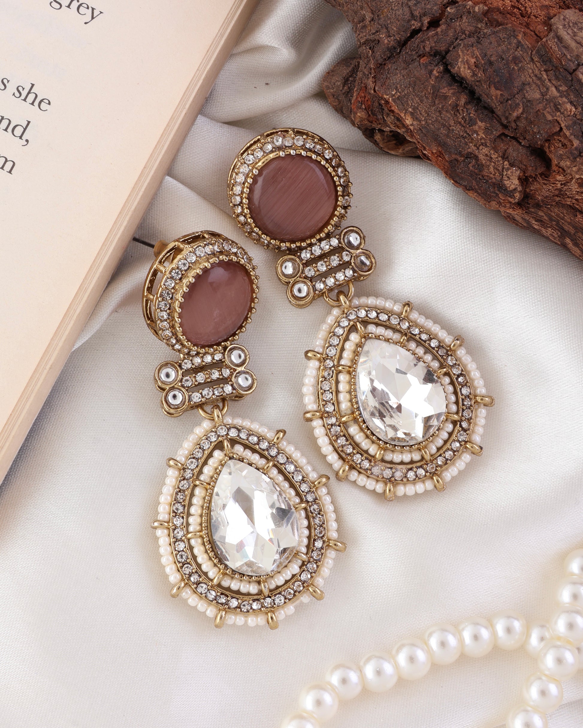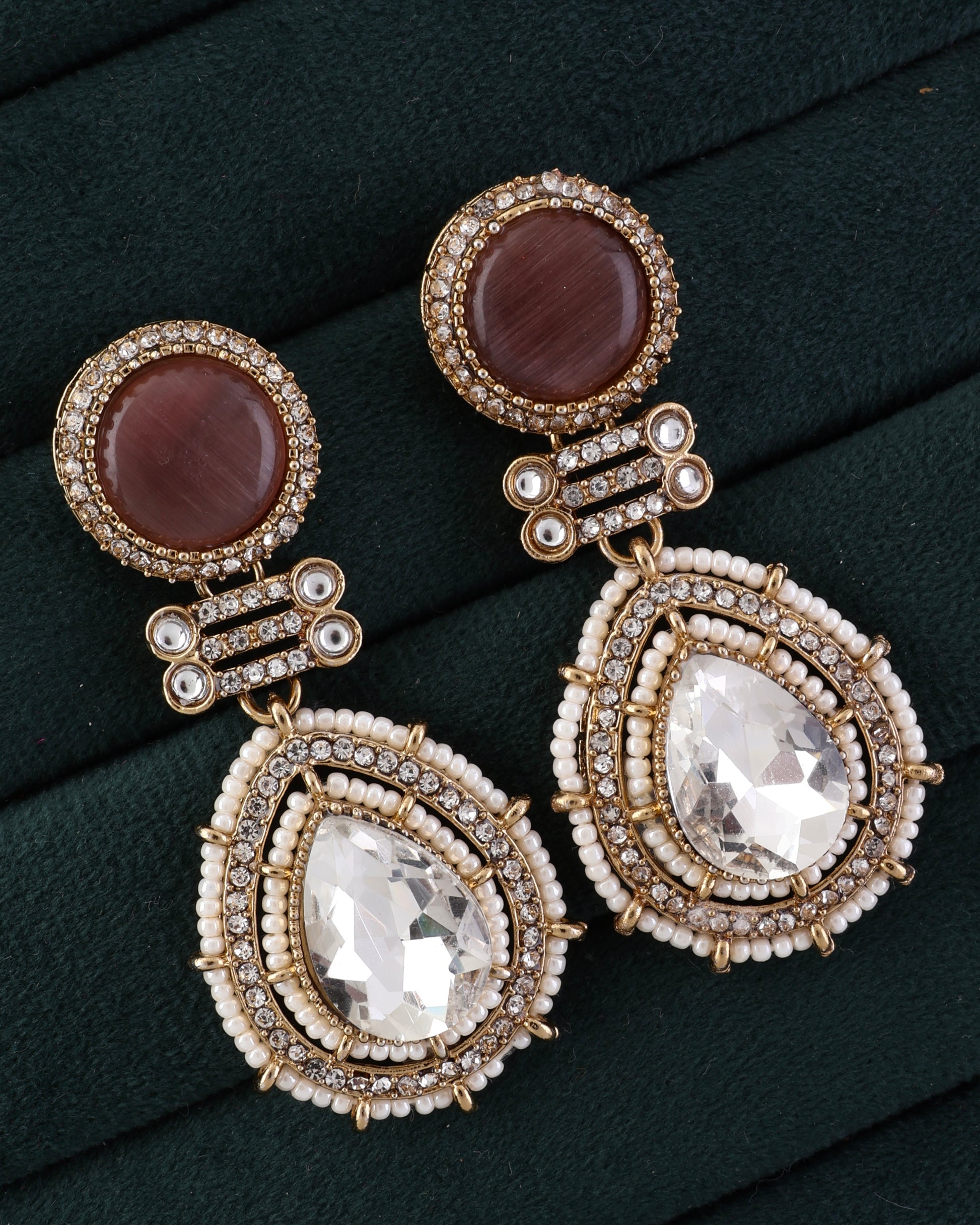 Wine Zyra Premium Designer Zircone Polki Dupe Earring